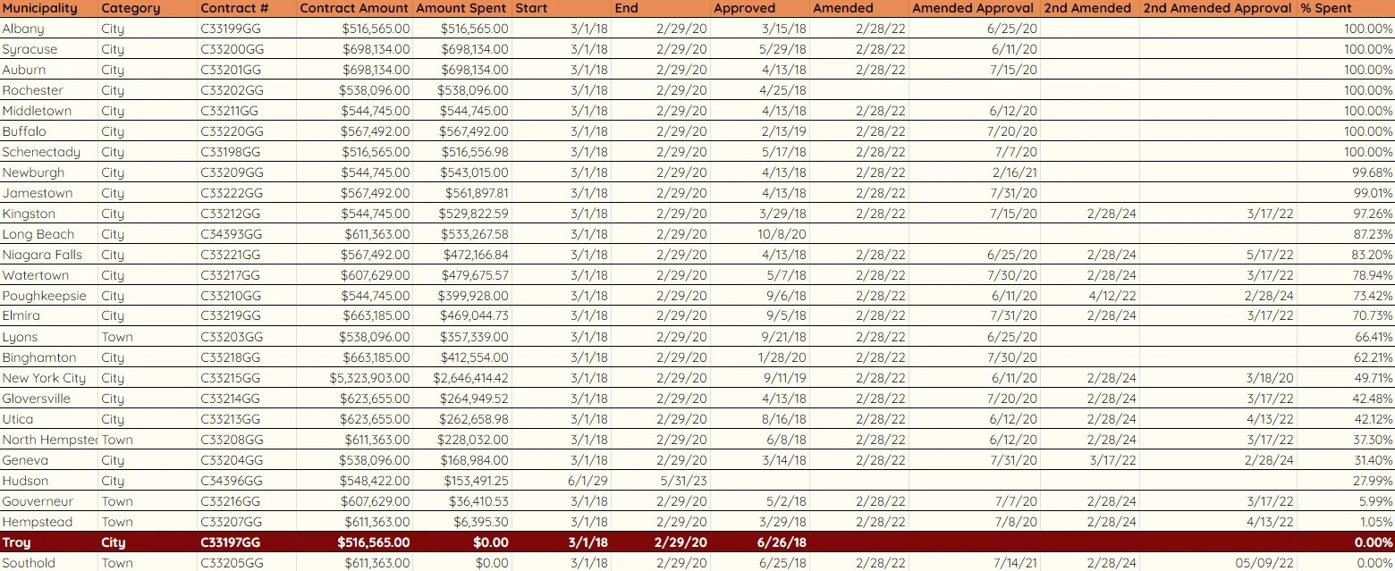 Background: Following the 2017 enactment of New York’s Clean Water Infrastructure Act, the City of Troy was awarded $516,565 in 2018 for a Department of Health grant to replace lead service lines. Both independent research and the City itself confirm none of that money has been spent. A 1-10-23 review of the Office of the State Comptroller’s Open Book Data shows that Troy is the only Round 1 City to spend none of the Lead Service Line Replacement money and the only Round 1 municipality to not request an extension after having spent less than 85% of the funds. This is not for lack of need: in its most recent annual water report, Troy discloses that it is in violation of the State’s lead and copper control requirements. The children of at least two Troy residents were very recently found to have very high elevated blood lead levels (EBLLs).